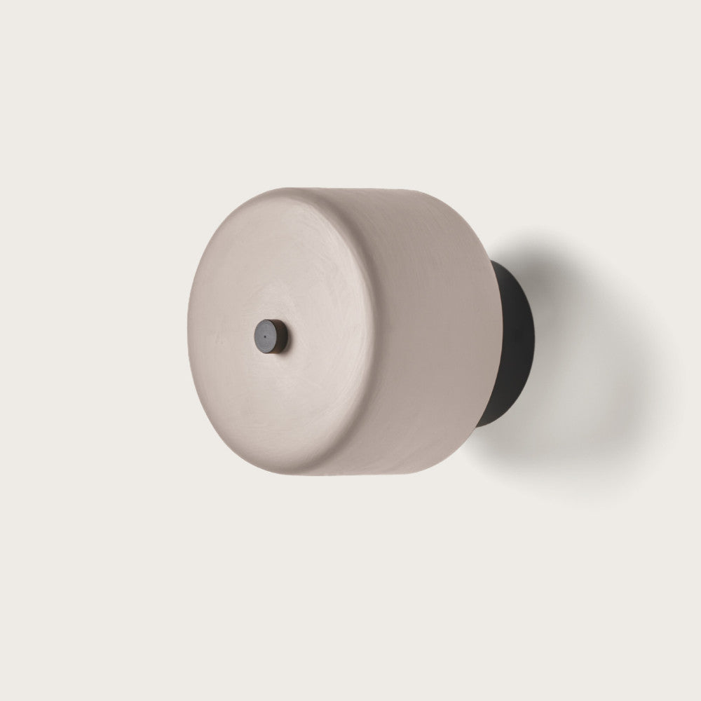 Aora Wall Light designed by Ac Studio for Aromas del Campo features a smoothly contoured cylindrical ceramic shade with contrasting metal accents. This minimal and contemporary wall light has an understated calm and effortless elegance which allows it to sit comfortably in many interior settings. Available with a Black metal finish and a Nude or Vintage Brown shade.