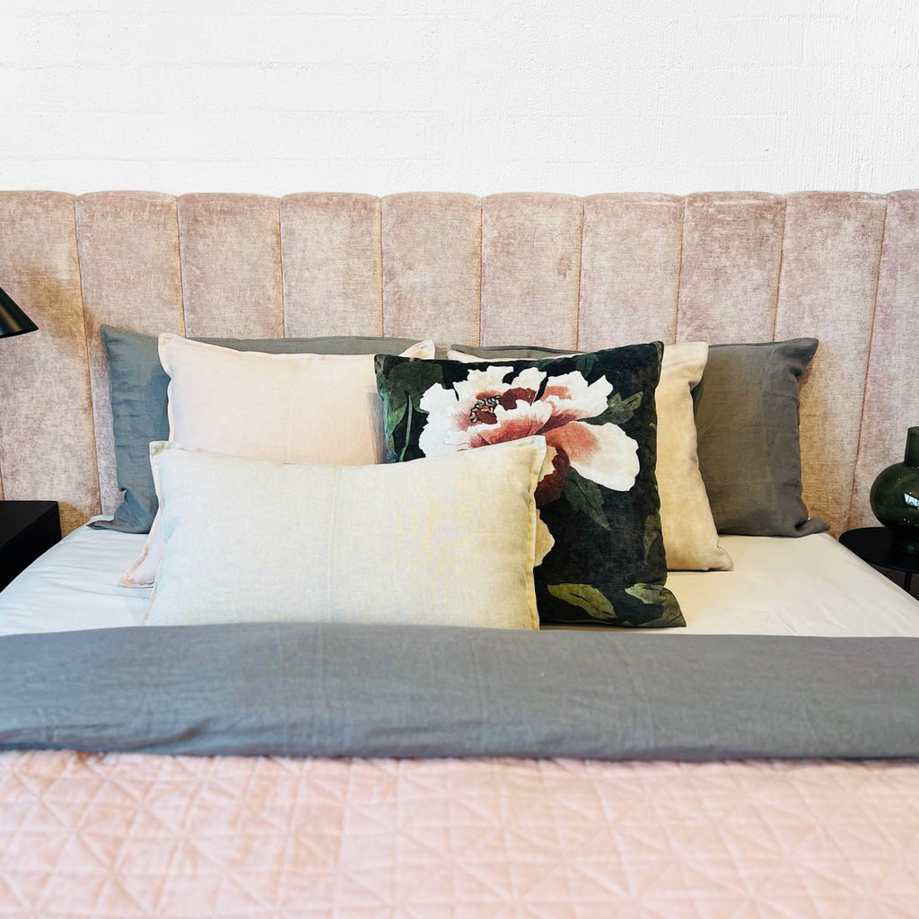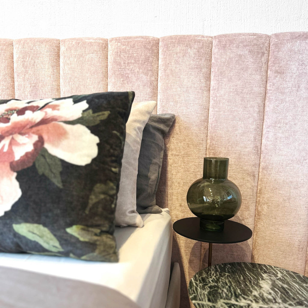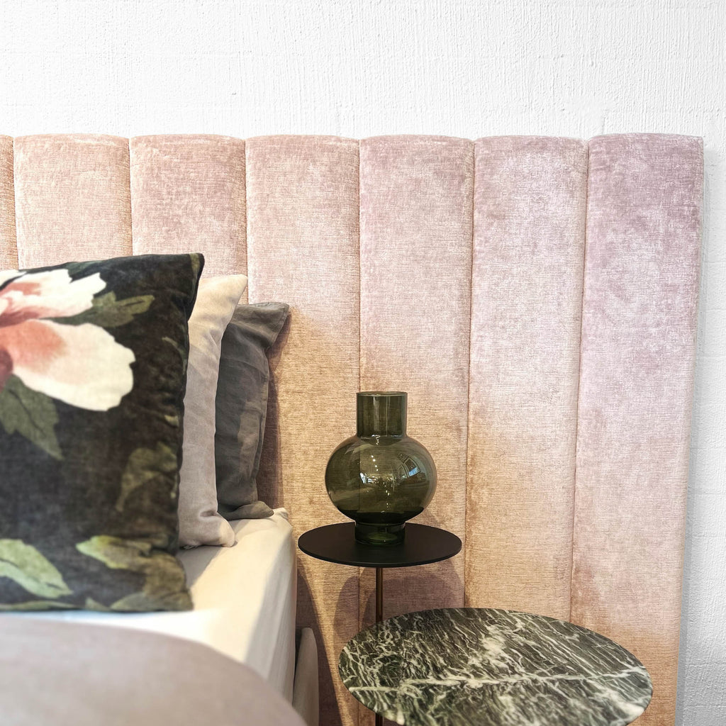 Featured - Blythe Bedhead in Mokum Bespoke Blush velvet fabric.