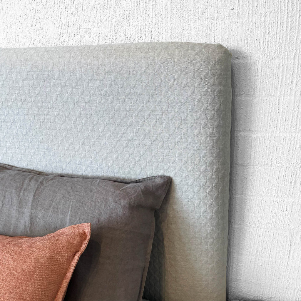 Featured - Darcie Bedhead in Mokum Topiary Silver fabric.