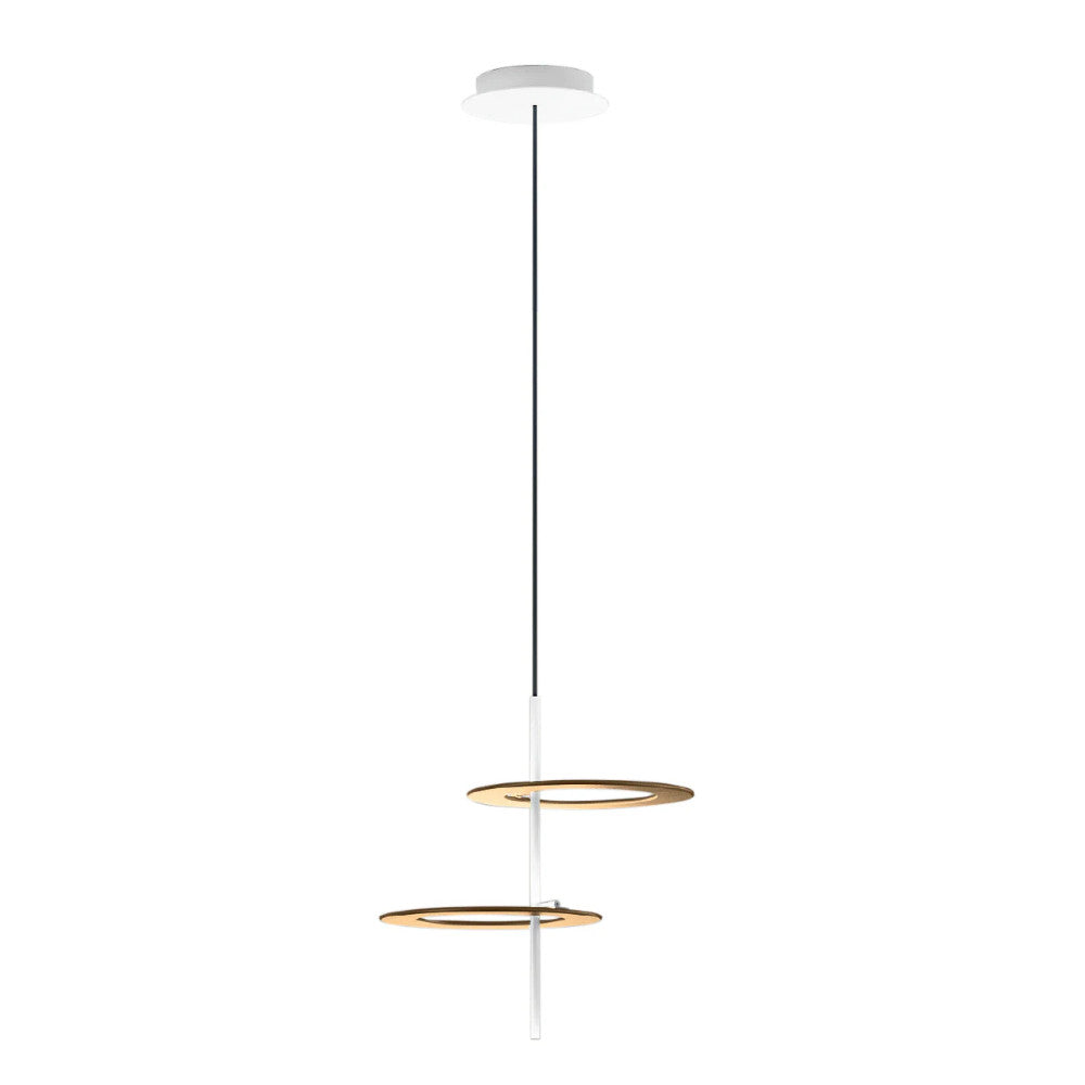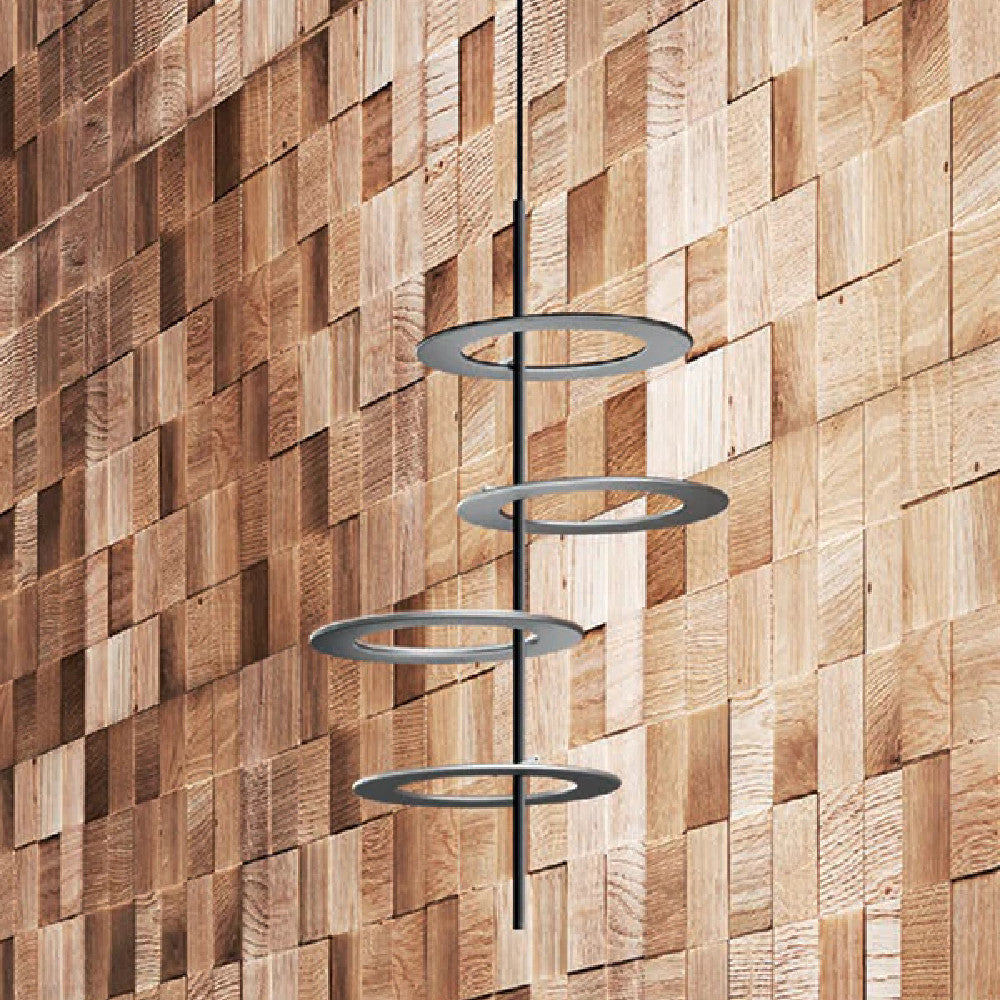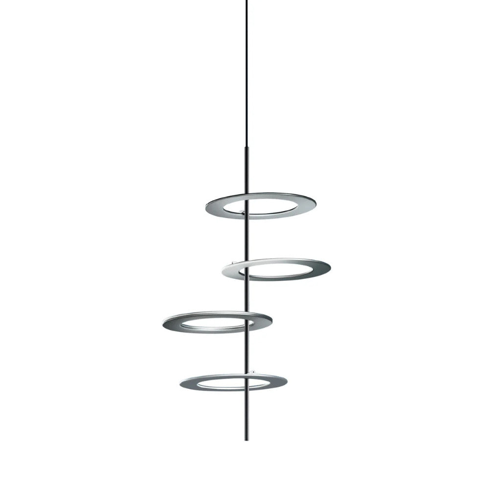 Hula Hoop pendant light is a minimalist fitting with a high energy LED source for modern applications. The unique design evokes the illusion of metallic hoops floating around a central element, creating a striking accent within a space. Available as 2 or 4 hoop version in a variety of finishes.