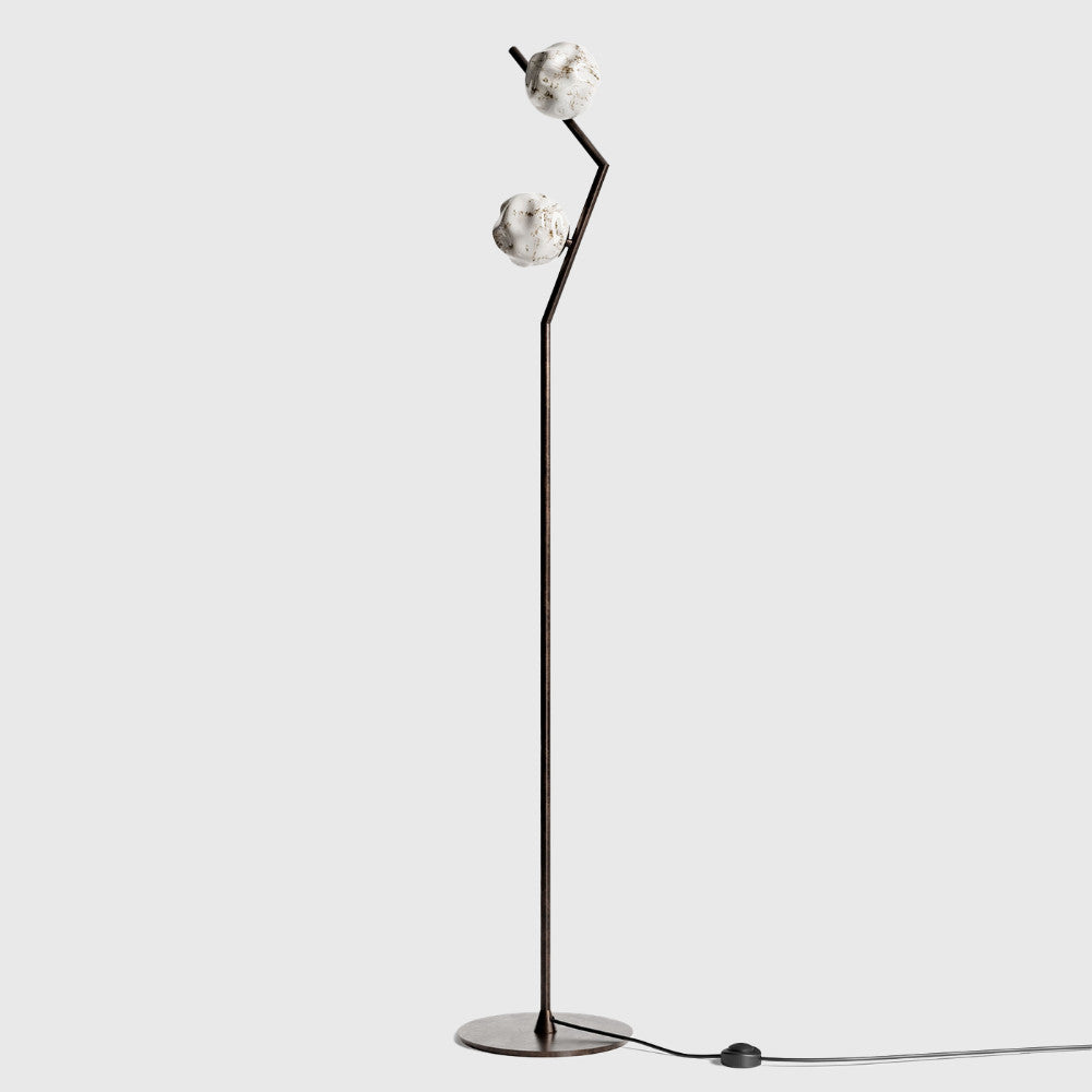 Stone Floor Lamp by Il Fanale perfectly personifies Mediterranean style: natural, material and warm while the Murano glass sphere recalls the harsh beauty of stone. Each lamp in this collection exhibits the exceptional skills of master glassmakers. The glass, enriched with metal powder, is expertly shaped by hand to create unrepeatable forms to ensure that each lamp is individual. The dark brass structure adds a rustic charm to the lamps to provide an original rough, yet modern and unique look.