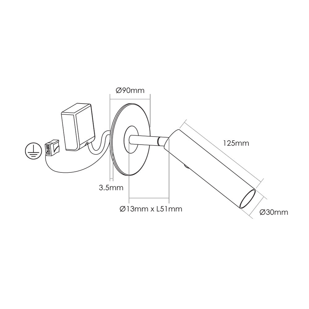 Milan bed side spot light with flat canopy and inbuilt 5W LED. Designed specifically for bed side applications, Milan features a dimmer switch on an adjustable head for easy operation. Canopy cover attaches via magnetic contact. Available in black or white finish.
