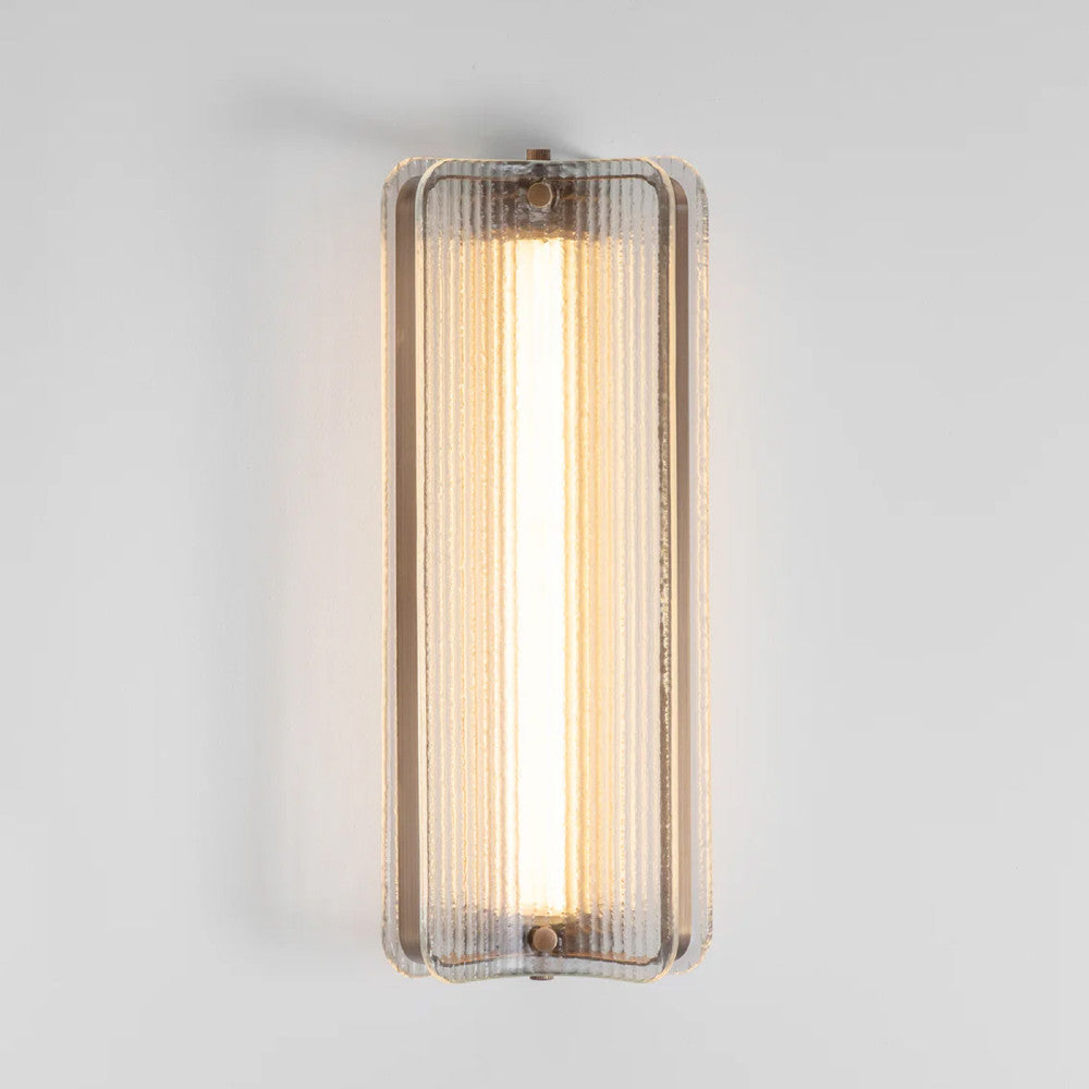 Apex Wall Light by J Adams & Co. features Kiln-formed glass panels that are held within a geometric brass frame, creating layers of texture and depth. Apex Wall Light explores the interaction of material and light through kiln-formed glass and hand-crafted brass. Subtle shifts in texture and tone bring depth to its simple, sculptural form. Designed for both interior and bathroom spaces, its IP44 rating ensures performance without compromise. A considered balance of utility and elegance, the Apex Wall Light offers a quiet but distinctive presence.
