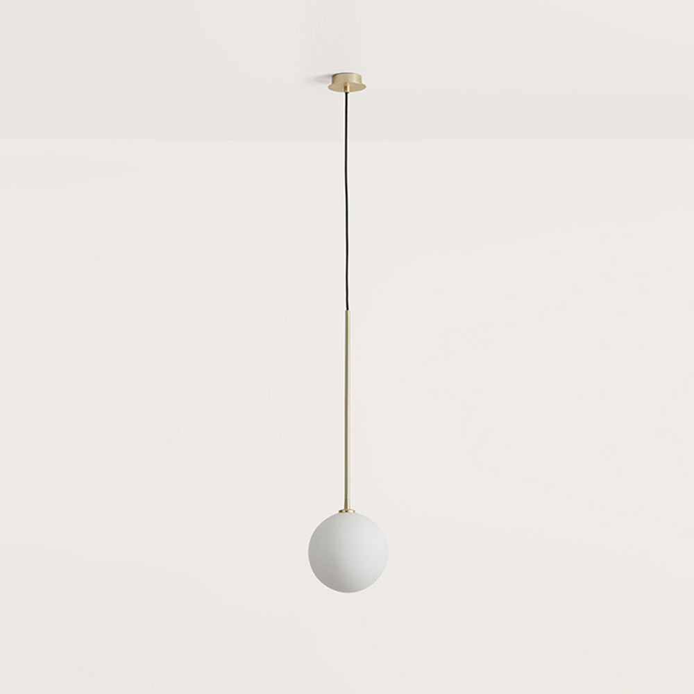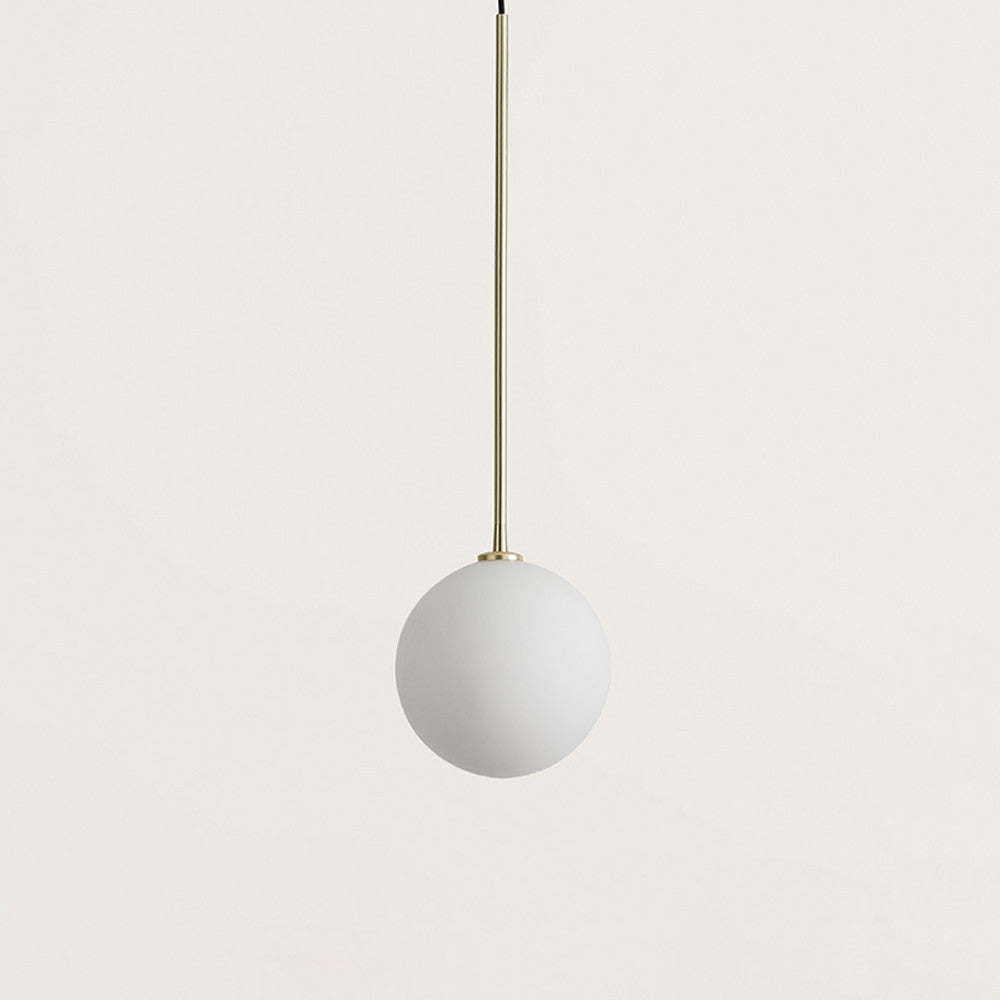 Ball Pendant Light designed by AC Studio for Aromas del Campo incorporates the perennially popular sphere of glass and combines it with a sleek metal suspension to create a sophisticated and refined silhouette. The blown glass is available in a clear or opal finish and the metal fixture in a Matte Black or Matte Brass finish. A hugely versatile suspension, it will work equally well as an individual pendant or in an arrangement.