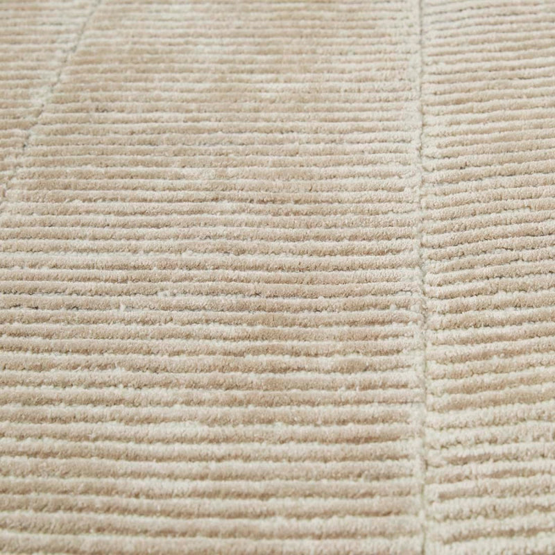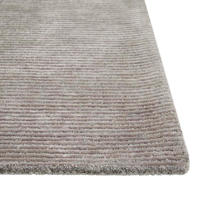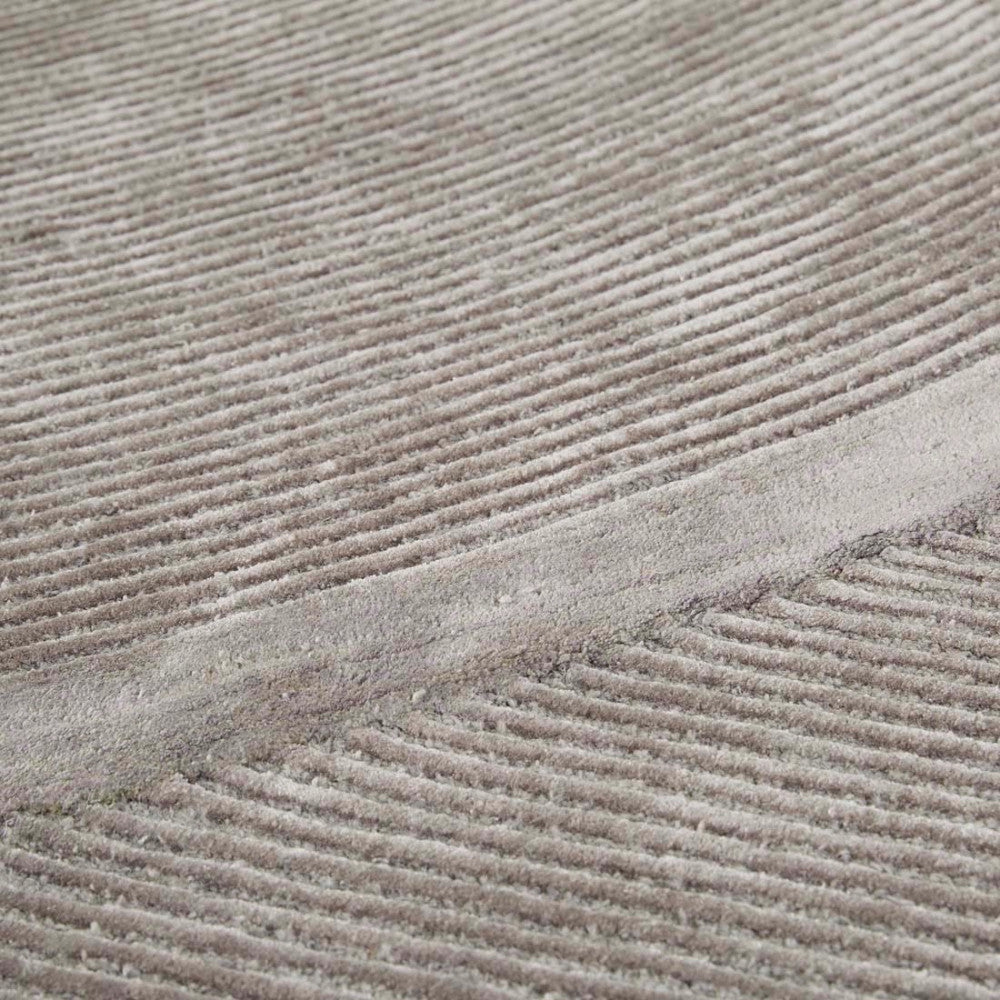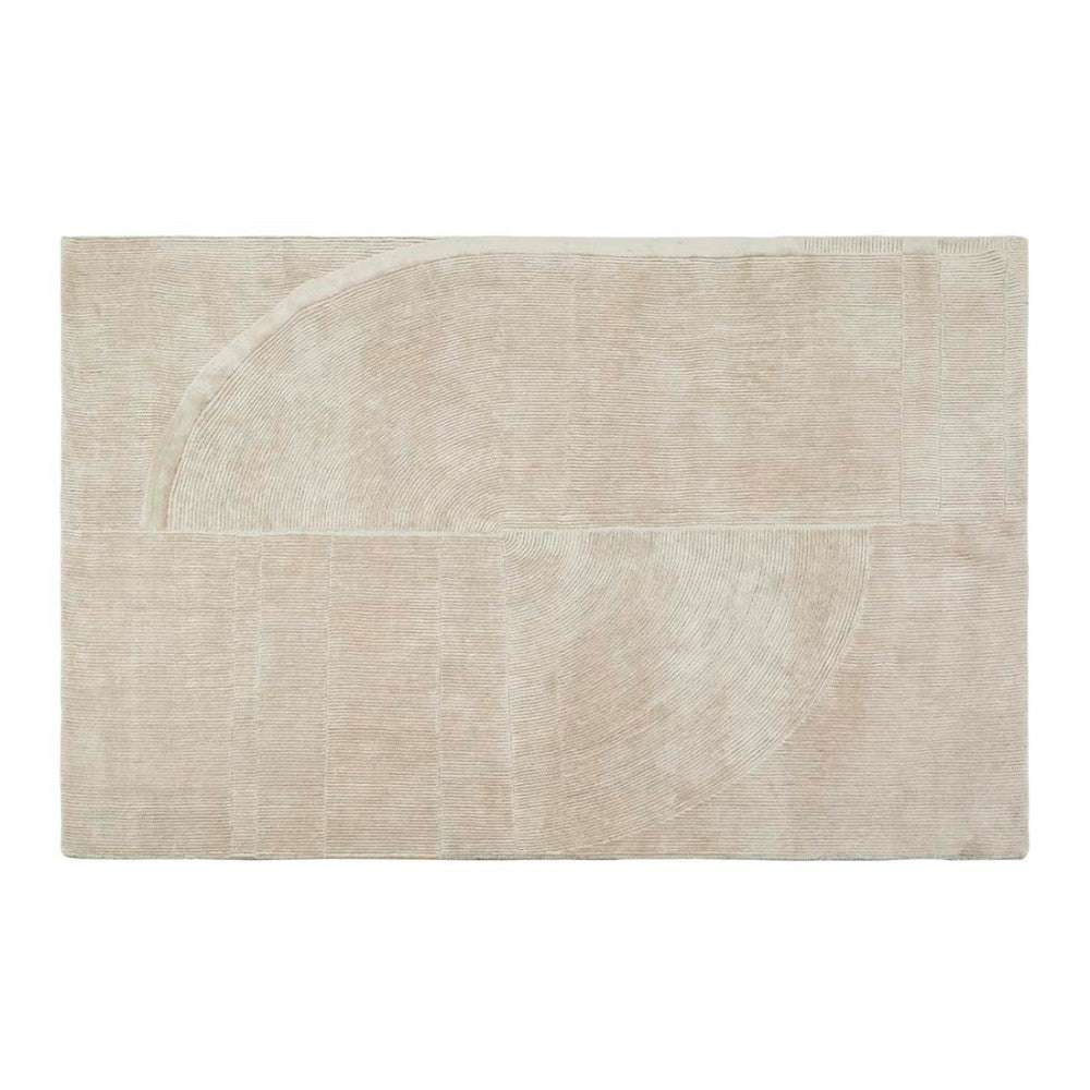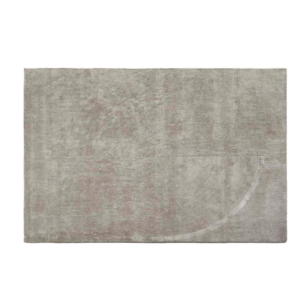 This modern and dynamic rug blends clean lines and a conceptual shape to lend interest and a soft touch to a room or entryway.