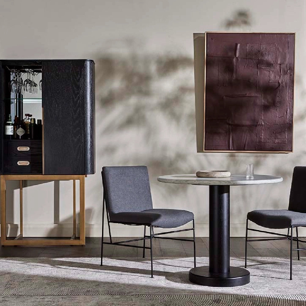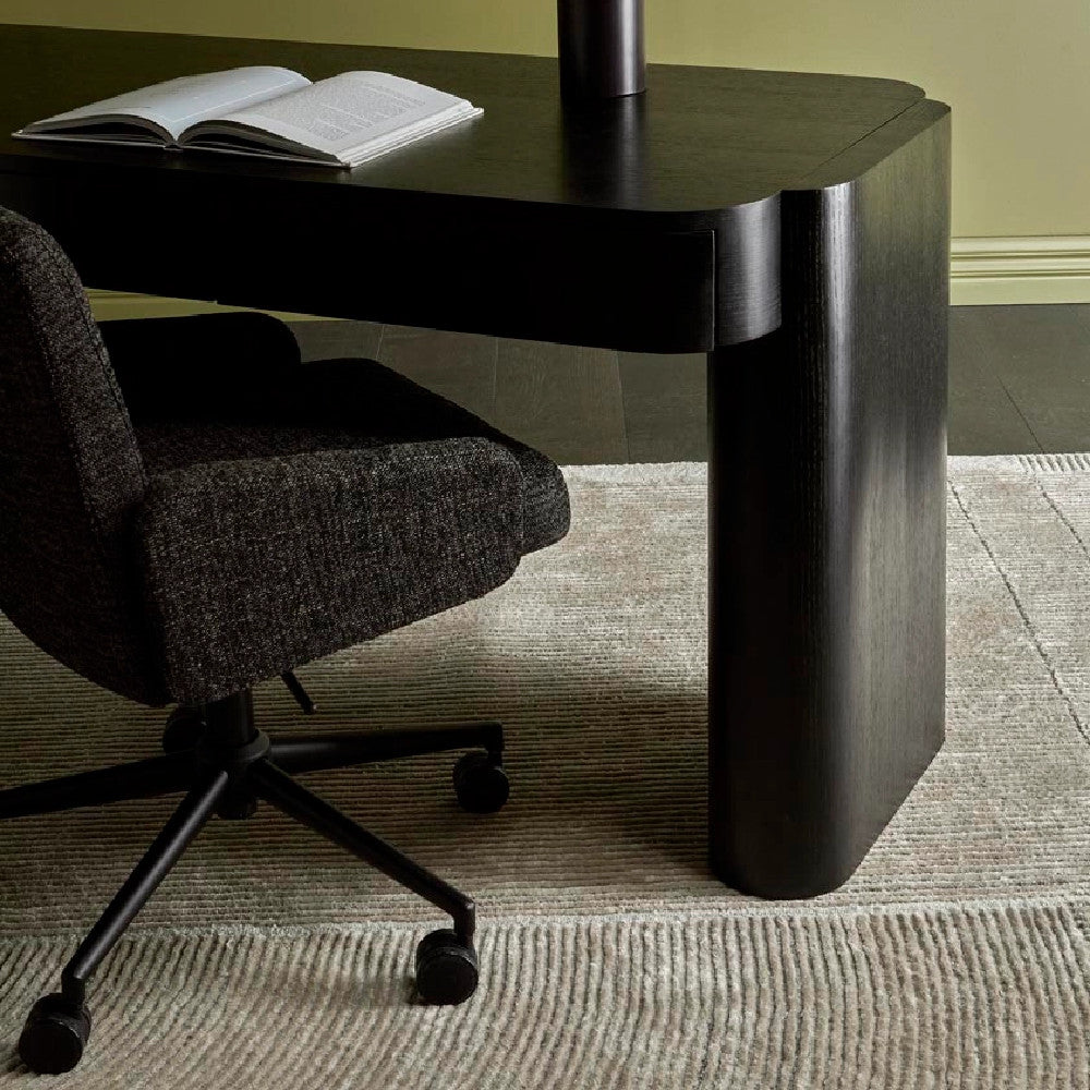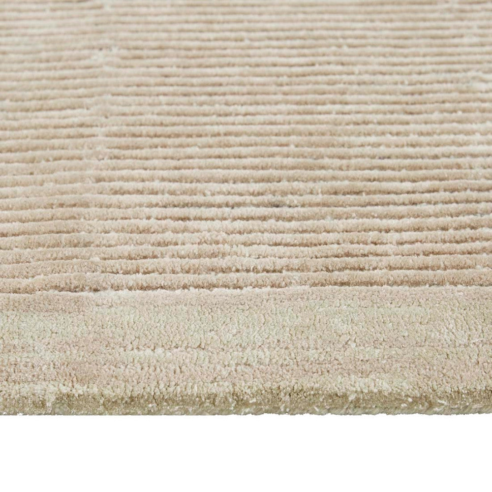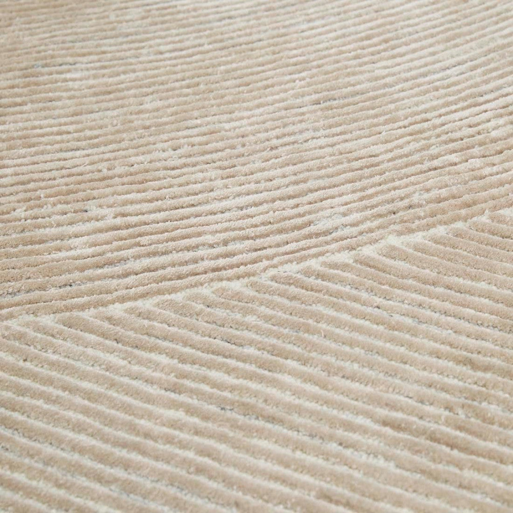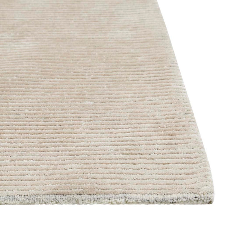 This modern and dynamic rug blends clean lines and a conceptual shape to lend interest and a soft touch to a room or entryway.