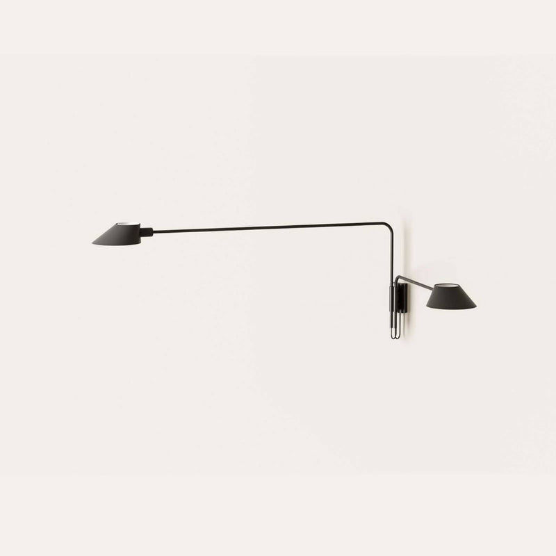 Duo Wall Light by Aromas Del Campo was designed by AC Studio. Duo’s steel structure protrudes from the wall in an angular fashion that emphasises functionality through its adjustability to swerve. The narrow shades continue the visual angularity of its form which gives Duo its overall clean yet bold visual impact.