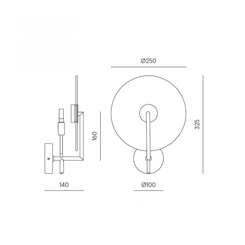 Erto Large Wall Light designed by AC Studio for Aromas Del Campo is a decorative indoor light fixture composed of a metallic structure in matte black and matte brass details with a soft pink glass disc.