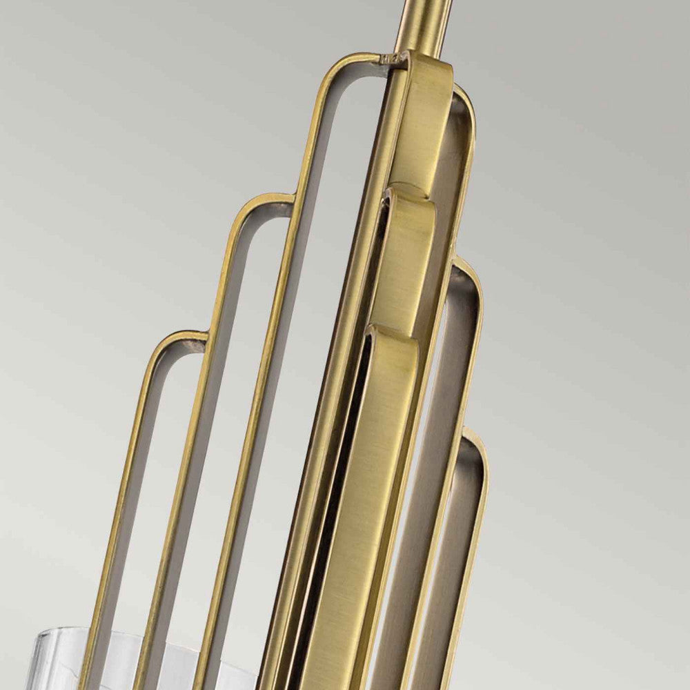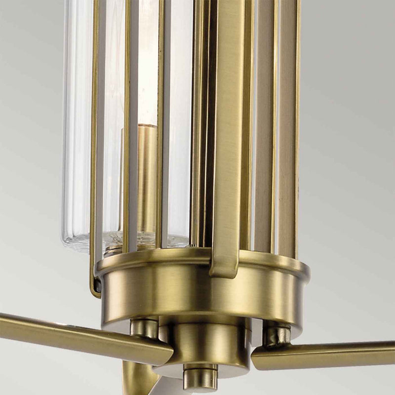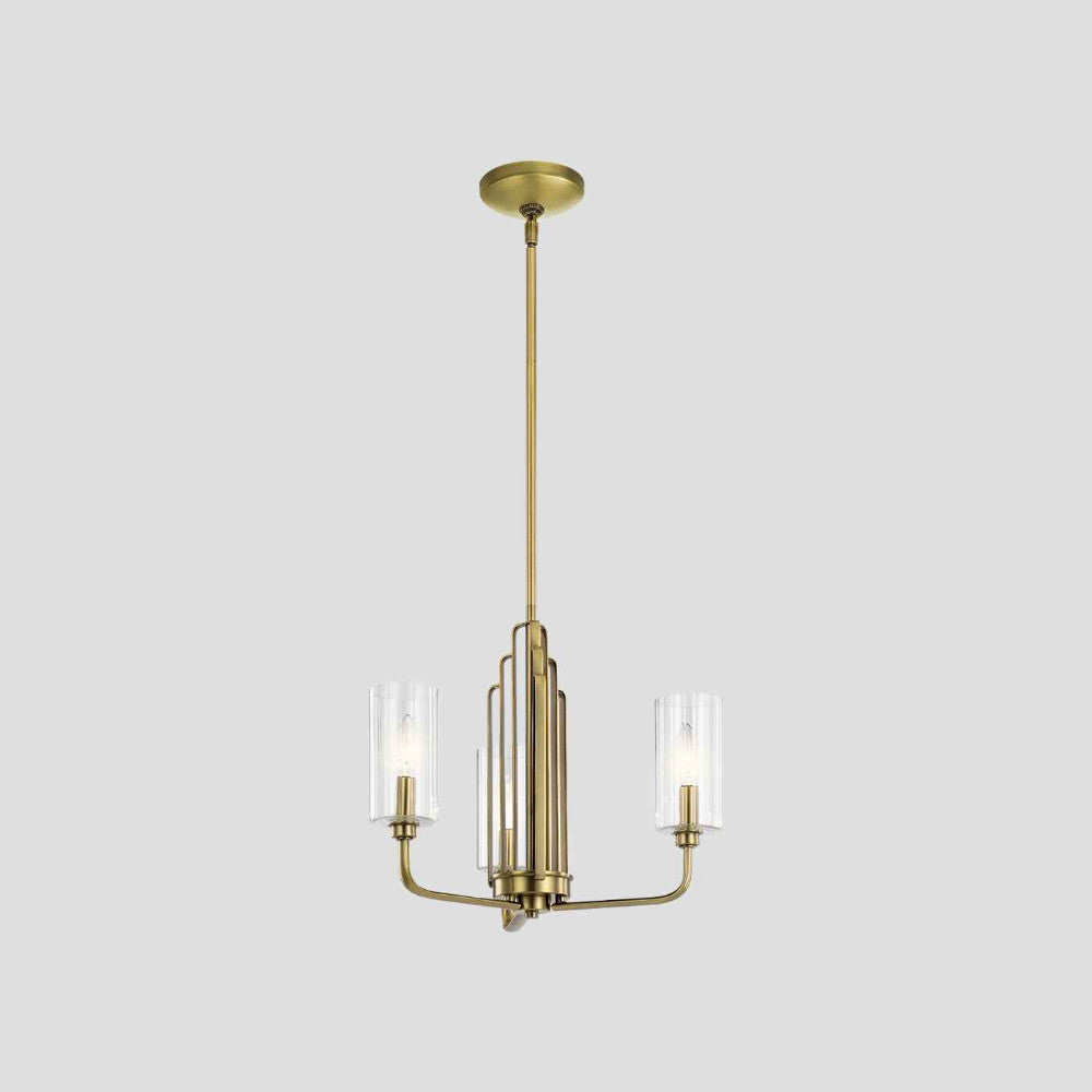Kimrose 3lt Chandelier by Quintiesse is an Art Deco masterpiece. Its geometric shapes take centre stage in a gorgeous Brushed Natural Brass or Polished Nickel finish. The shades are clear fluted glass, meaning they’re ribbed gently with vertical grooves to produce a subtle lighting effect. For lighting without the effect, simply remove the shades. Supplied with 2 x 152cm and 6 x 30.5cm rods.