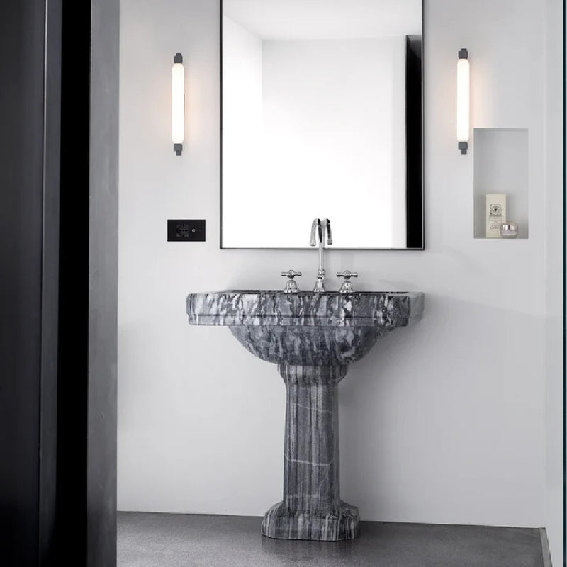 Born from an existing system to illuminate large windows, La Roche was the first wall lamp conceived by Le Corbusier for his purist architectures: Villa La Roche and Pavillon de l'Esprit Nouveau. The iconic design has been updated with a LED lighting source with glass diffuser shaped on the original incandescent bulb. Produced by Nemo to celebrate a classic of lightness and function. Available in an IP45 for bathroom use in black or grey finish.