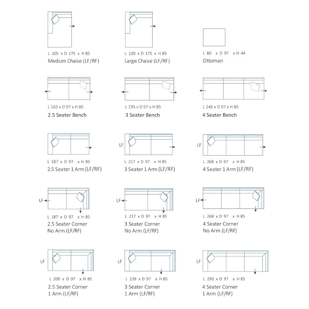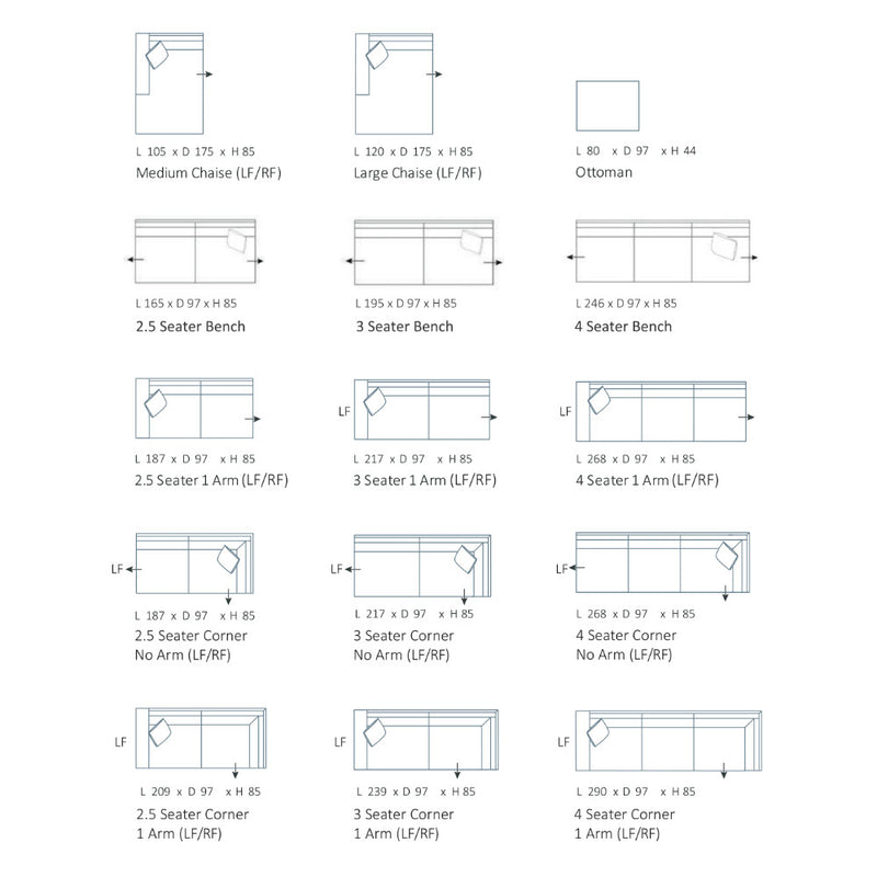 Construction: No sag steel suspension, Seat cushions fully reversible, Fabric fully upholstered