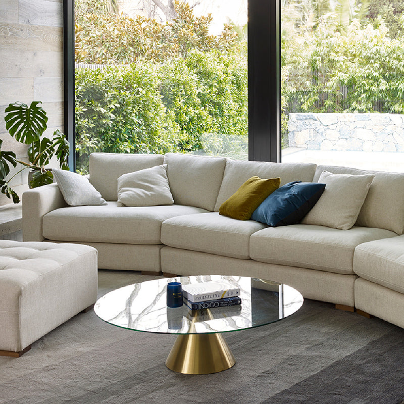 Featuring more contemporary proportions for family living and available in many modular combinations and sofa sizes, Dempsey’s angle chaise allows for conversational seating you can wrap the whole family around.