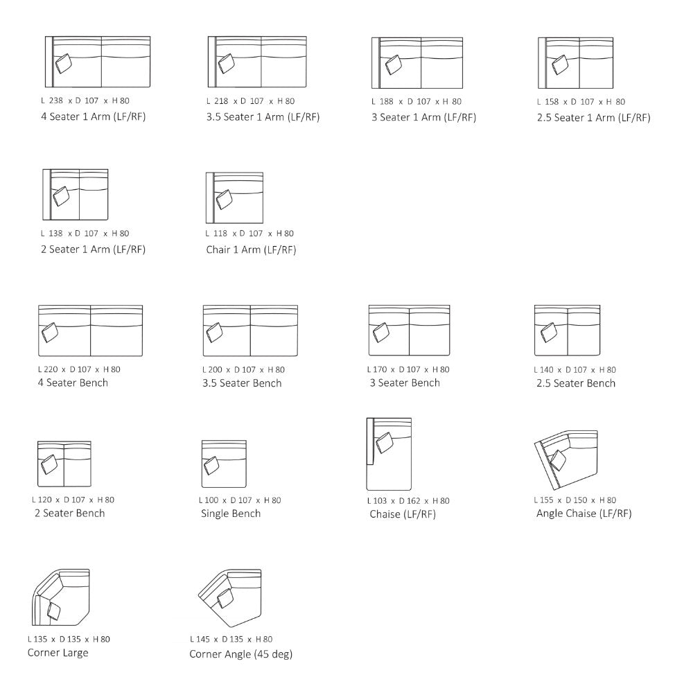 Construction: No sag steel suspension, Seat cushions fully reversible, Back cushions fully reversible, Legs removable for ease of delivery, Fabric fully upholstered