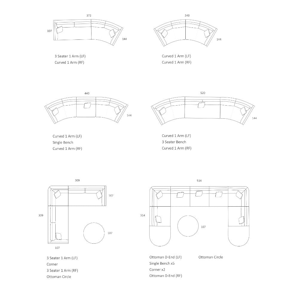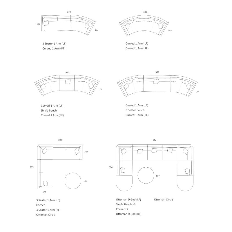 Lunar Modular Sofa - Curve 1 Arm RF