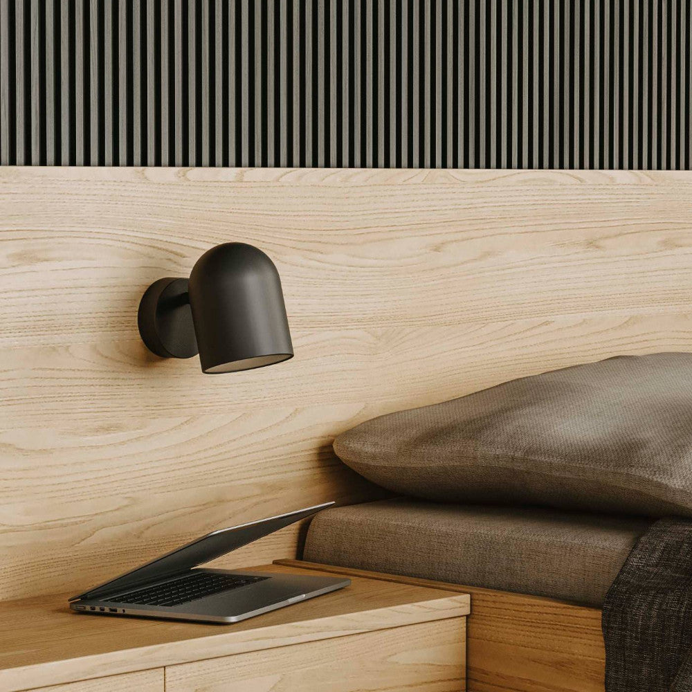 Pipe Wall Light by Aromas Del Campo was designed by AC Studio. Pipe features a refined and smooth dome-shaped matte black shade resulting in a clean and contemporary aesthetic. Perfect for any interior that requires a lighting that is minimal yet possesses a bold character.