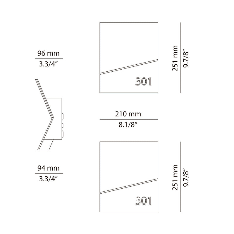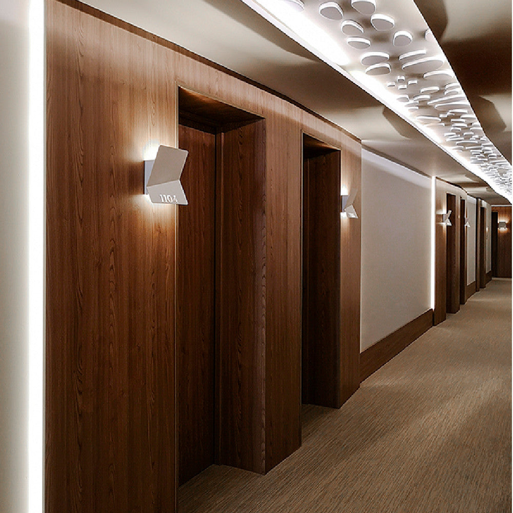 Metal wall lamps suitable for indoor and outdoor with integrated dimmable LED. The front plate allows laser-cut signage with custom creations including ideograms, logos and texts. Ideal for the bedroom, corridor, hotel, retail shop and restaurant.