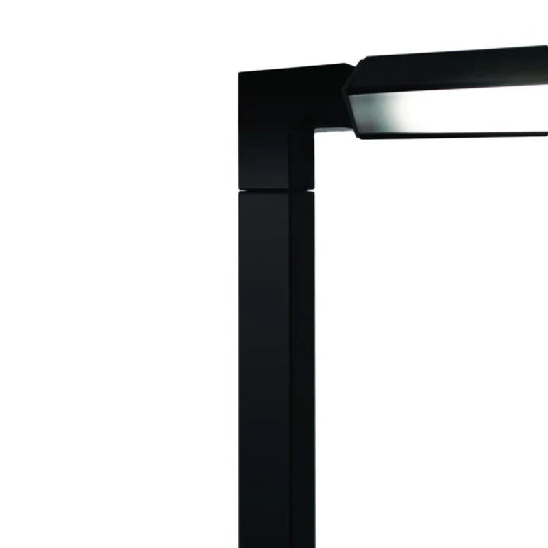 The SPIGOLO design is based on an extruded and tubular aluminium structure, connected with moulded ABS joints. Thanks to the joints, enabling the profiles to house LED sources, one can rotate 360 degrees in order to produce a directional direct or indirect lighting, screened by an opaline diffuser in polycarbonate. The floor version is designed as such to provide a virtual divider to ambiences. LED sources are dimmable and with warm tone.
